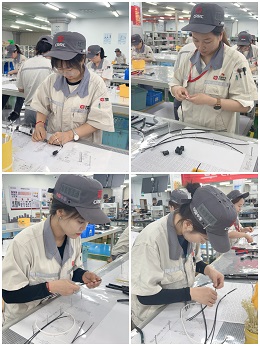 活动现场激情四溢,气氛高涨。参赛人员全力以赴,细致严谨,以最佳状态投入到比赛中,左手拿着电线,右手拿线号管,有条不紊的严格按照工艺文件要求进行操作。